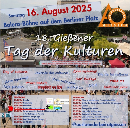 Der Ausländerbeirat der Stadt Gießen veranstaltet im Rahmen des Stadtfestes wieder einen Tag der Kulturen.
