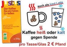 Zu den Informationen über die Städtepartnerschaft mit San Juan del Sur in Nicaragua gab es fairen Justus-Kaffee und Kekse. Wegen des heißen Wetters war ebenfalls geeister Latte im Angebot.
